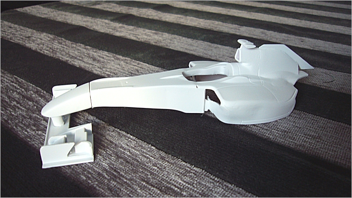 3) Der W01 hat im vorderen Bereich eine breitere Nase. Ich nehme als Grundlage die Ferrari-Nase aus 2004 von Mini-Z